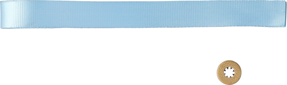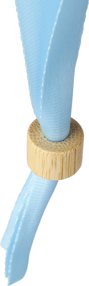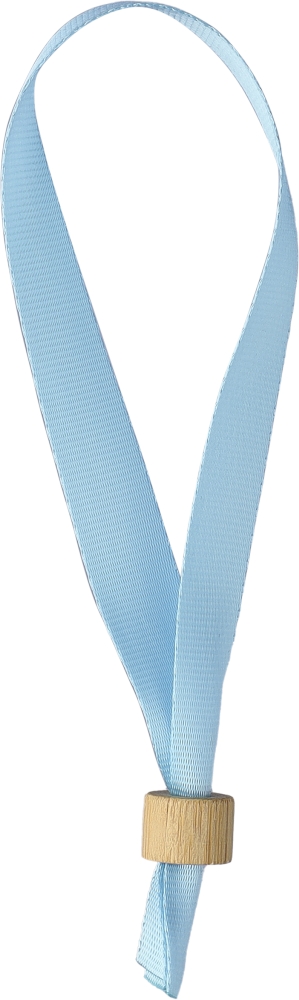 Šňůrka na zápěstí rPET 300D s bambusovým uzavíracím klipem. Rozměry: 34 x 1,5 x 0 cm