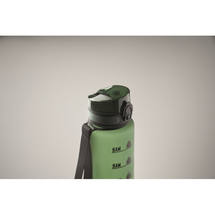 Sportovní RPET láhev na vodu, motivační časové značky, víčko otevíratelné jednou rukou, bezpečnostní zámek a popruh na přenášení. Objem: 1 l.Rozměry: O7,5 x 28,5cm