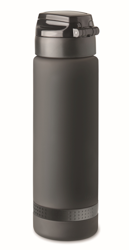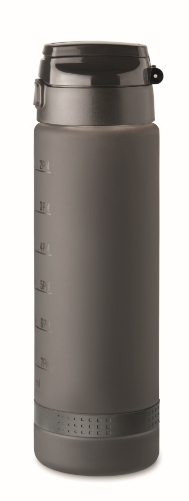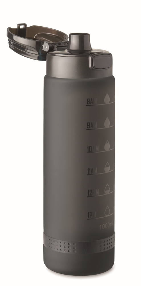 Sportovní RPET láhev na vodu. Motivační časomíra, víčko otevíratelné jednou rukou, bezpečnostní zámek a držadlo na přenášení. Objem: 1 l. Rozměry: O 7,8 x 26 cm