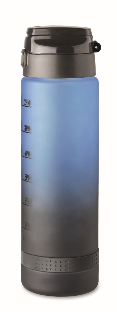 Sportovní RPET láhev na vodu. Motivační časomíra, víčko otevíratelné jednou rukou, bezpečnostní zámek a držadlo na přenášení. Objem: 1 l. Rozměry: O 7,8 x 26 cm