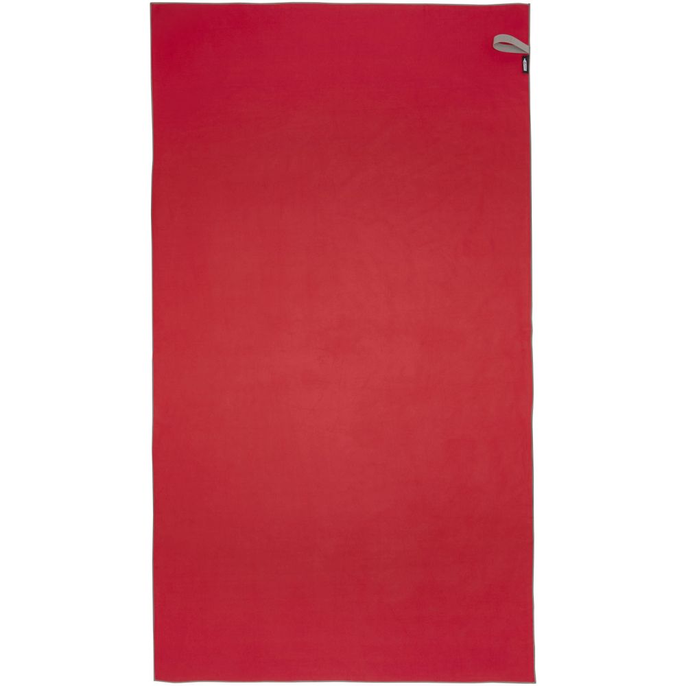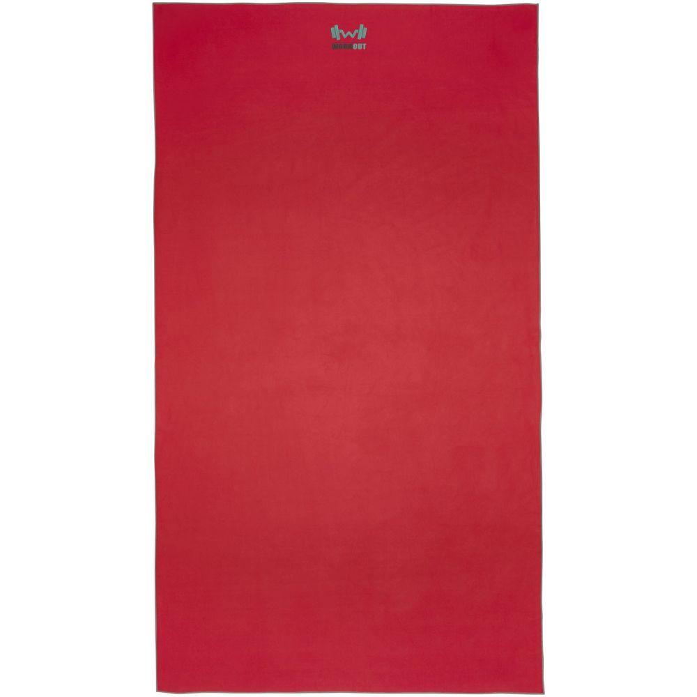 Sportovní ručník velmi dobře saje, je lehký, rychle schne a tkanina je odolná a extrémně měkká. Když je ručník složený a zajištěný elastickým páskem, je zmenšen na malou velikost, díky čemuž je vhodný pro nošení do posilovny, na koupaliště nebo na výlety nebo kempování. Ručník má rozměr 180 × 100 cm a je vyrobena z 90% GRS recyklovaného polyesteru a 10% nylonu a lze ho prát v pračce na 40 °C. Dodáváno s úložným sáčkem (25 × 8,5 cm) vyrobeným z recyklovaného PET plastu, který poskytuje skvělou plochu pro tisk loga. Rozměry: 180 x 100 cm.