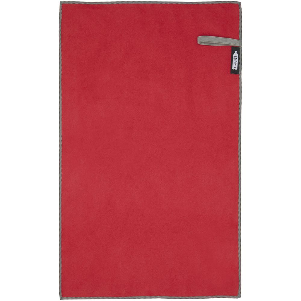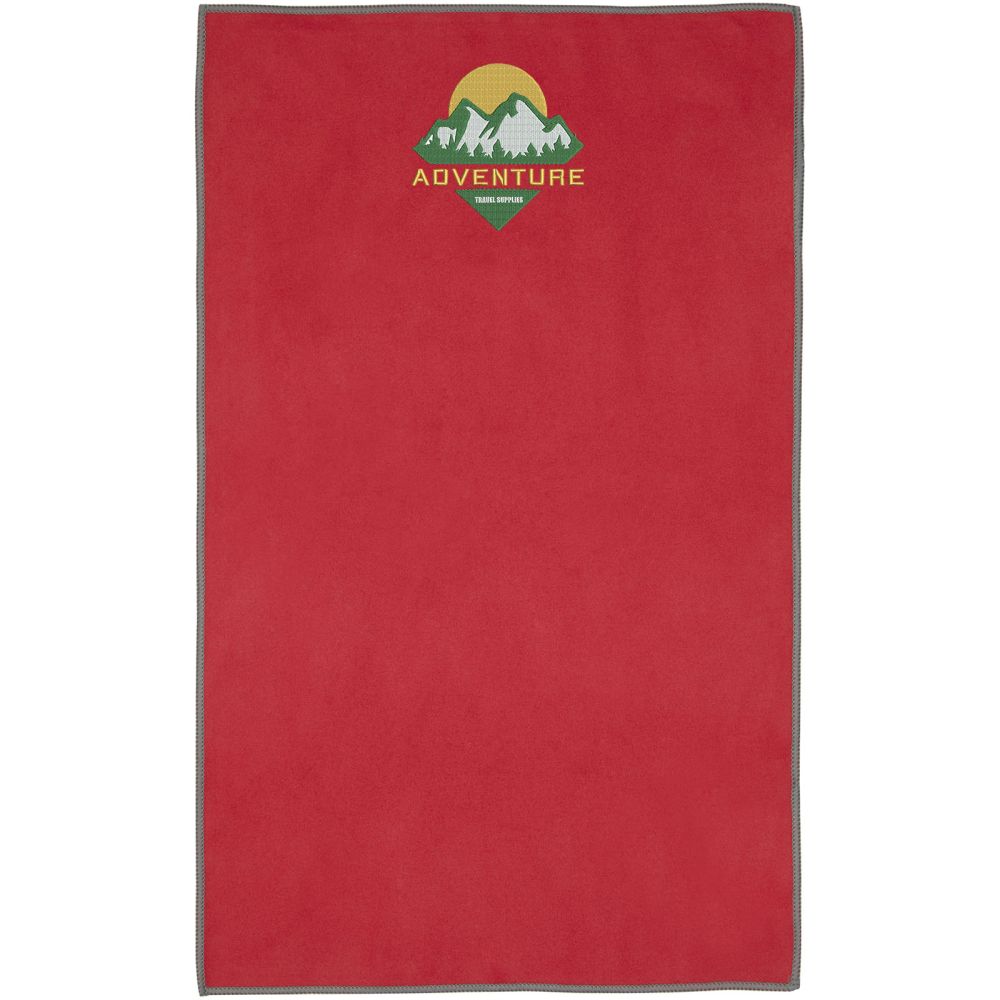 Sportovní ručník velmi dobře saje, je lehký, rychle schne a tkanina je odolná a extrémně měkká. Když je ručník složený a zajištěný elastickým páskem, je zmenšen na malou velikost, díky čemuž je vhodný pro nošení do posilovny, na koupaliště nebo na výlety nebo kempování. Ručník má rozměr 50 × 30 cm a je vyroben z 90% GRS recyklovaného polyesteru a 10% nylonu a lze jej prát v pračce na 40 °C. Dodáváno s úložným sáčkem (15,5 × 10 cm) vyrobeným z recyklovaného PET plastu, který poskytuje skvělou plochu pro tisk loga. Rozměry: 50 x 30 cm.
