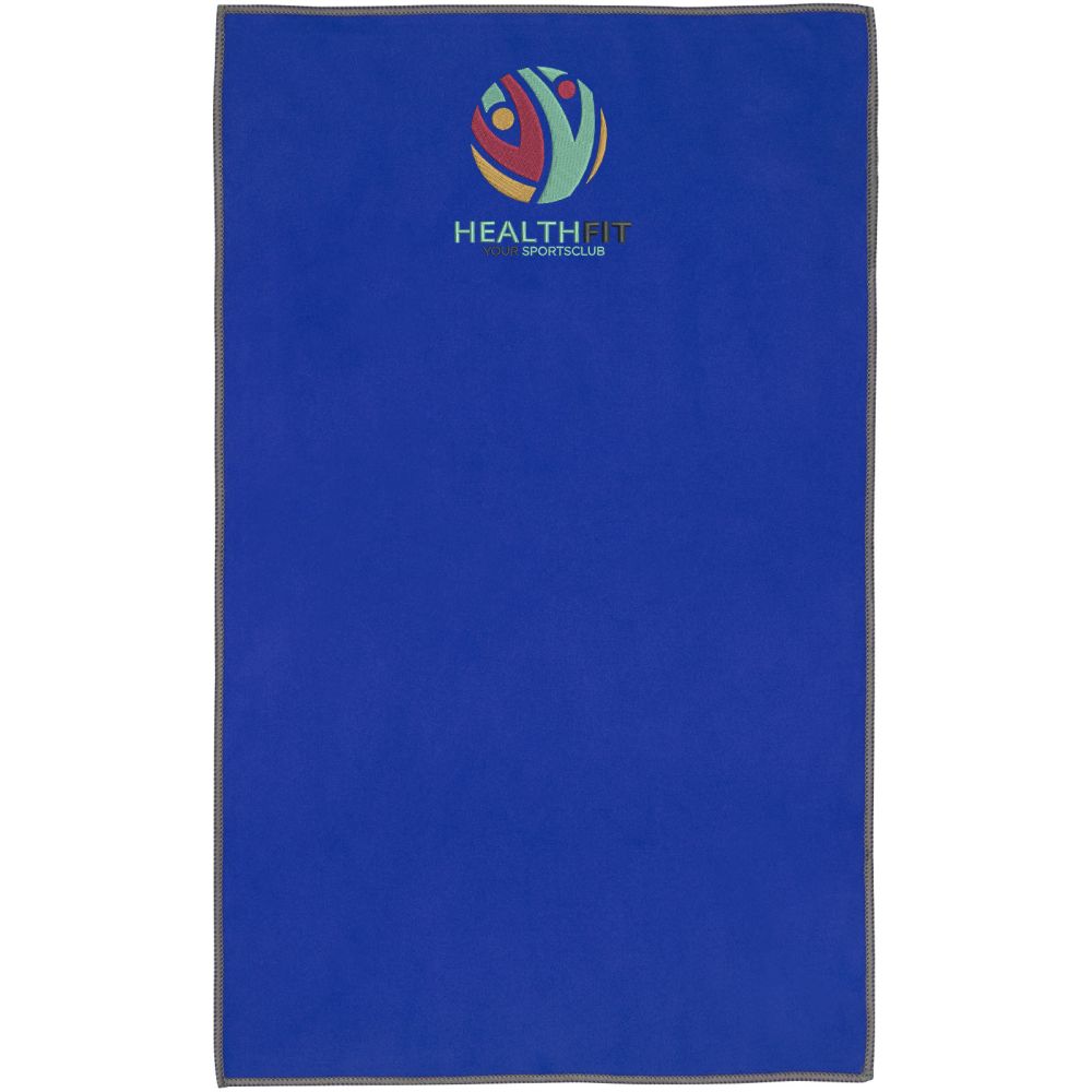 Sportovní ručník velmi dobře saje, je lehký, rychle schne a tkanina je odolná a extrémně měkká. Když je ručník složený a zajištěný elastickým páskem, je zmenšen na malou velikost, díky čemuž je vhodný pro nošení do posilovny, na koupaliště nebo na výlety nebo kempování. Ručník má rozměr 50 × 30 cm a je vyroben z 90% GRS recyklovaného polyesteru a 10% nylonu a lze jej prát v pračce na 40 °C. Dodáváno s úložným sáčkem (15,5 × 10 cm) vyrobeným z recyklovaného PET plastu, který poskytuje skvělou plochu pro tisk loga. Rozměry: 50 x 30 cm.