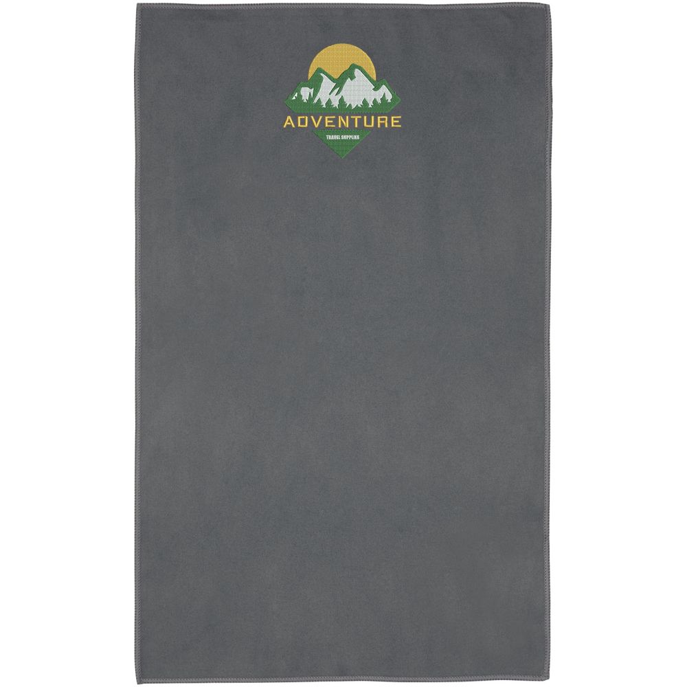 Sportovní ručník velmi dobře saje, je lehký, rychle schne a tkanina je odolná a extrémně měkká. Když je ručník složený a zajištěný elastickým páskem, je zmenšen na malou velikost, díky čemuž je vhodný pro nošení do posilovny, na koupaliště nebo na výlety nebo kempování. Ručník má rozměr 50 × 30 cm a je vyroben z 90% GRS recyklovaného polyesteru a 10% nylonu a lze jej prát v pračce na 40 °C. Dodáváno s úložným sáčkem (15,5 × 10 cm) vyrobeným z recyklovaného PET plastu, který poskytuje skvělou plochu pro tisk loga. Rozměry: 50 x 30 cm.