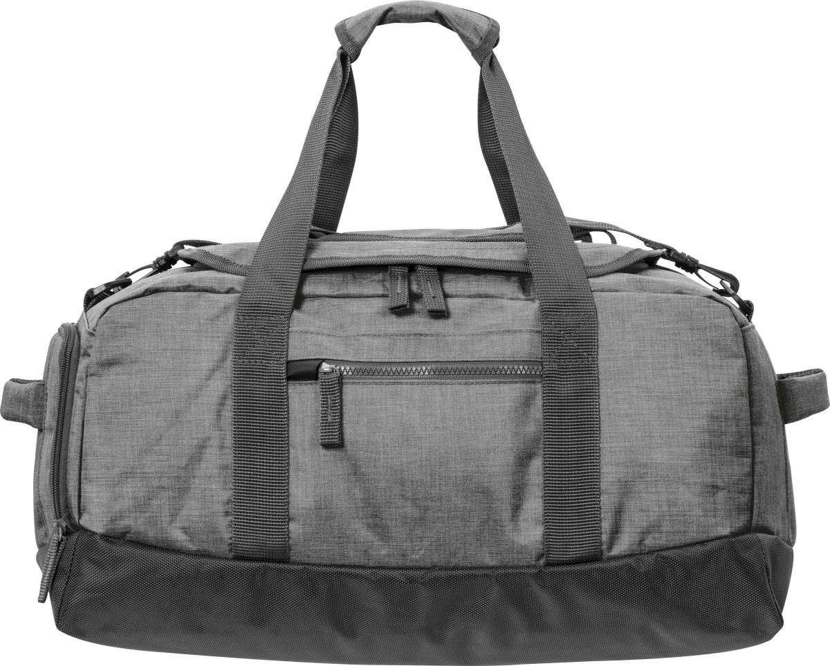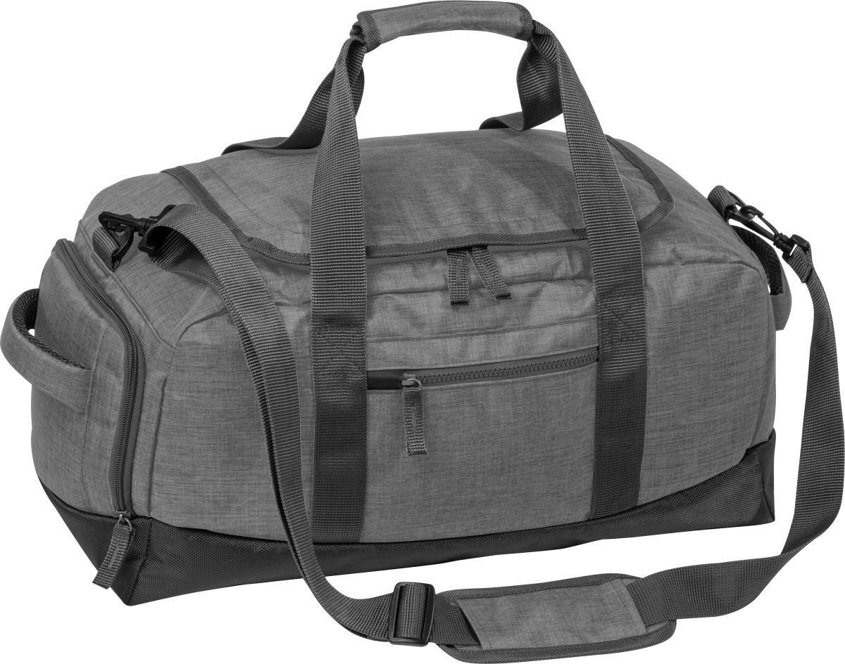 Sportovní taška s černými doplňky, s prostorem na boku, který je ideální pro boty nebo mokré oblečení, velkým hlavním prostorem a přední kapsou na zip. Lze nosit v ruce nebo na rameni díky nastavitelnému popruhu. Rozměry: 67 x 27,5 x 25,5 cm.