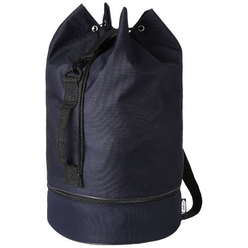 Voděodolná sportovní taška vyrobená z recyklovaného PET plastu s prostorným 20litrovým hlavním oddílem se stahovacím uzávěrem, uchem na boku a nastavitelným ramenním popruhem. Má také samostatný spodní oddíl na zip pro menší předměty. Rozměry: 48 x O 28 cm