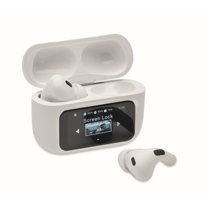 Bezdrátová 5.0 stereo sluchátka (30 mAh) True Wireless Stereo (TWS) z ABS s ANC/ENC a mikrofonem. Nabíjecí základna 230 mAh. Dotykový displej.Rozměry: 60 x 47 x 22MM