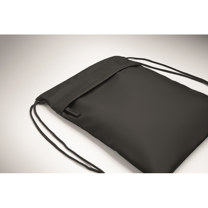 Stahovací batoh z polyesteru 600D RPET potažený PU, s polyesterovou podšívkou 190T RPET. Přední kapsa na zip.Rozměry: 33 x 42cm