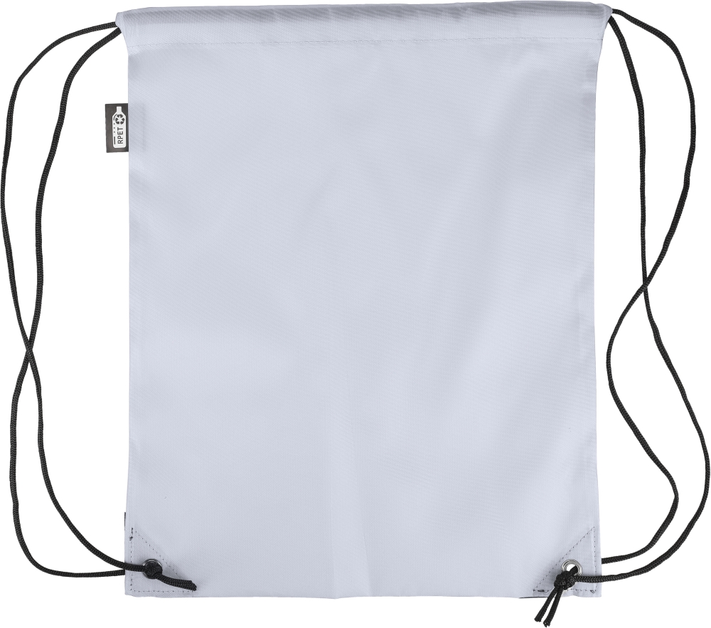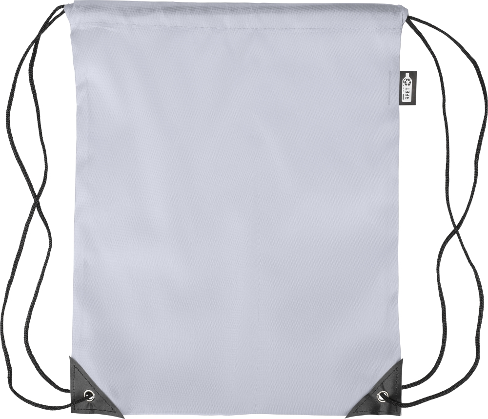 Stahovací batoh z polyesteru 210D se dvěma černými PU rohy na přední straně a vnitřním prošitím. Má černou nylonovou šňůrku na každé straně, zapínání na stahovací šňůrku a jednu vnitřní přihrádku. Objem: 5 l. Nosnost: 7 kg. Včetně štítku z rPET. Rozměry: 34 x 0,1 x 42 cm