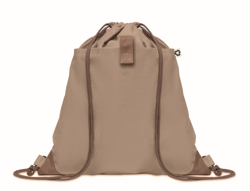 Stahovací batoh z 50% bavlny a 50% recyklované bavlna. 220 gr/m2. Rozměry: 38 x 42 cm. Materiál: recyklovaná bavlna