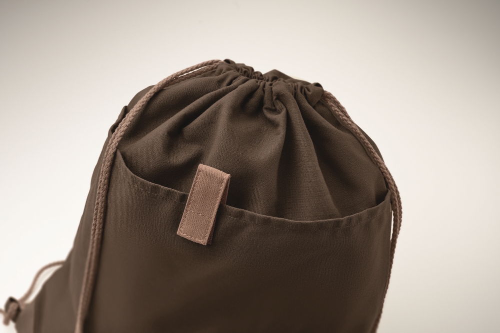 Stahovací batoh z 50% bavlny a 50% recyklované bavlna. 220 gr/m2. Rozměry: 38 x 42 cm. Materiál: recyklovaná bavlna