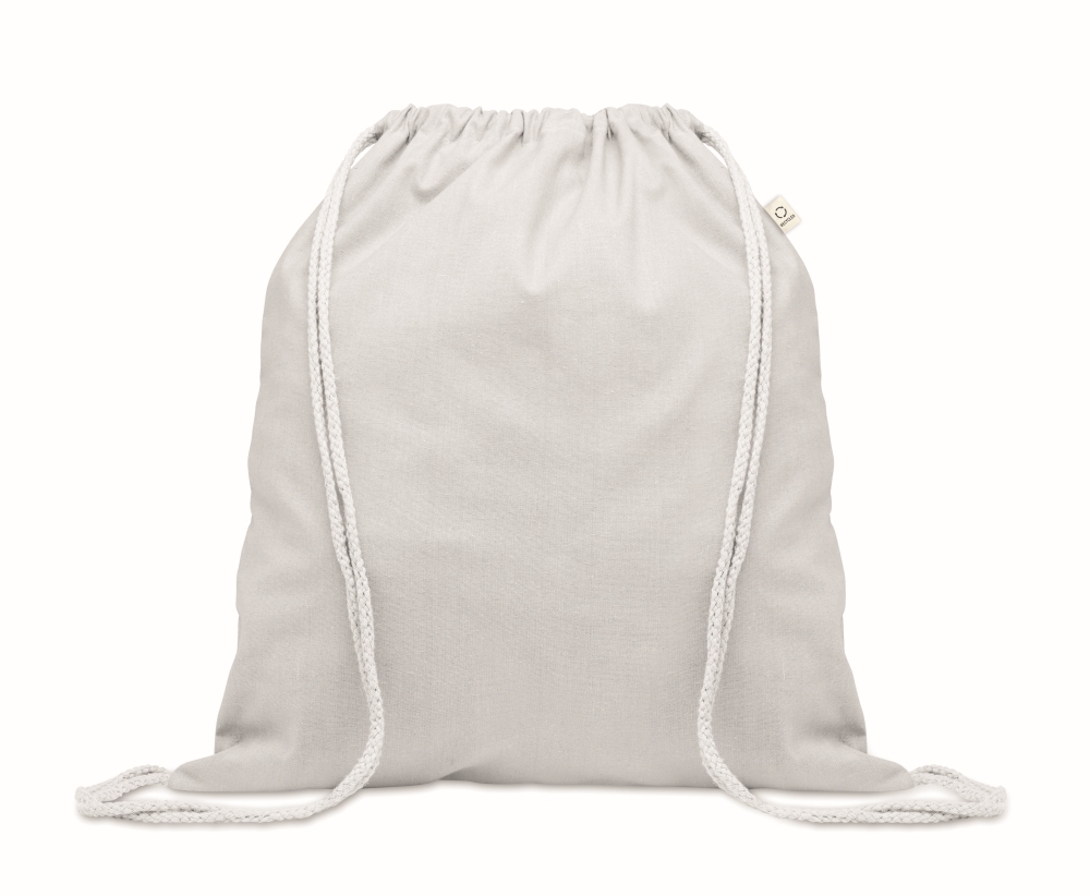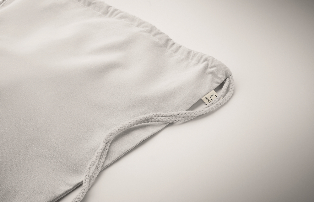 Batoh se stahovací šňůrkou z recyklované předspotřební bavlny (70 %) a RPET (30 %). 140 gr/m2. Rozměry: 37 x 41 cm. Materiál: recyklovaná bavlna