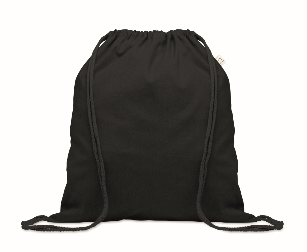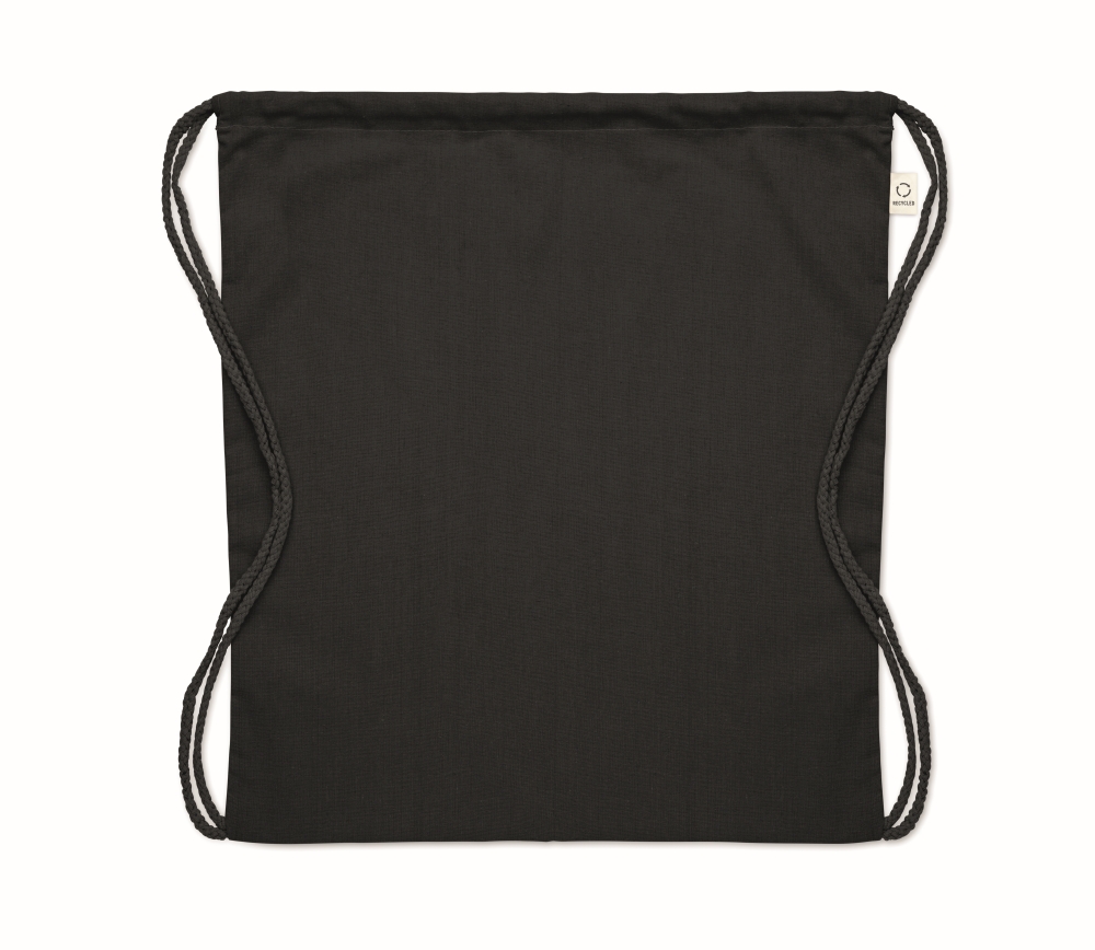 Batoh se stahovací šňůrkou z recyklované předspotřební bavlny (70 %) a RPET (30 %). 140 gr/m2. Rozměry: 37 x 41 cm. Materiál: recyklovaná bavlna