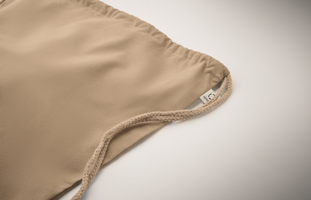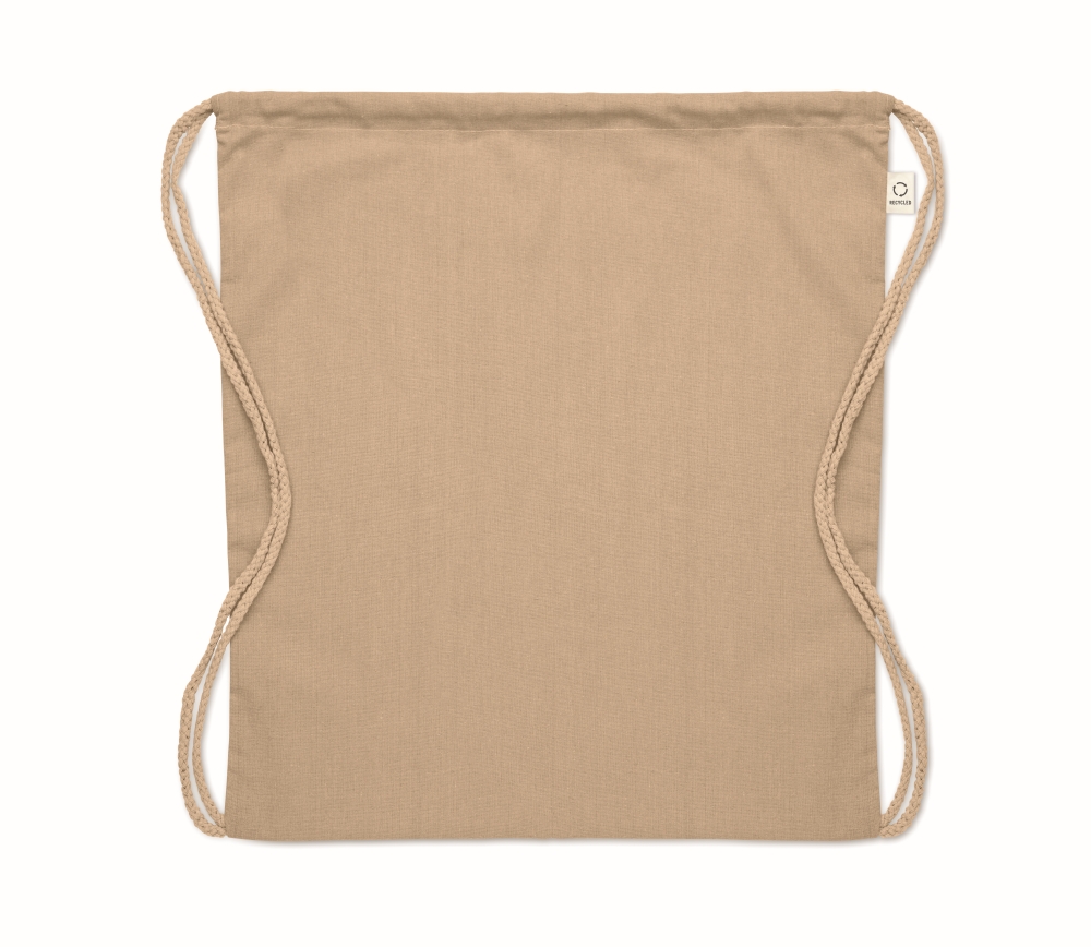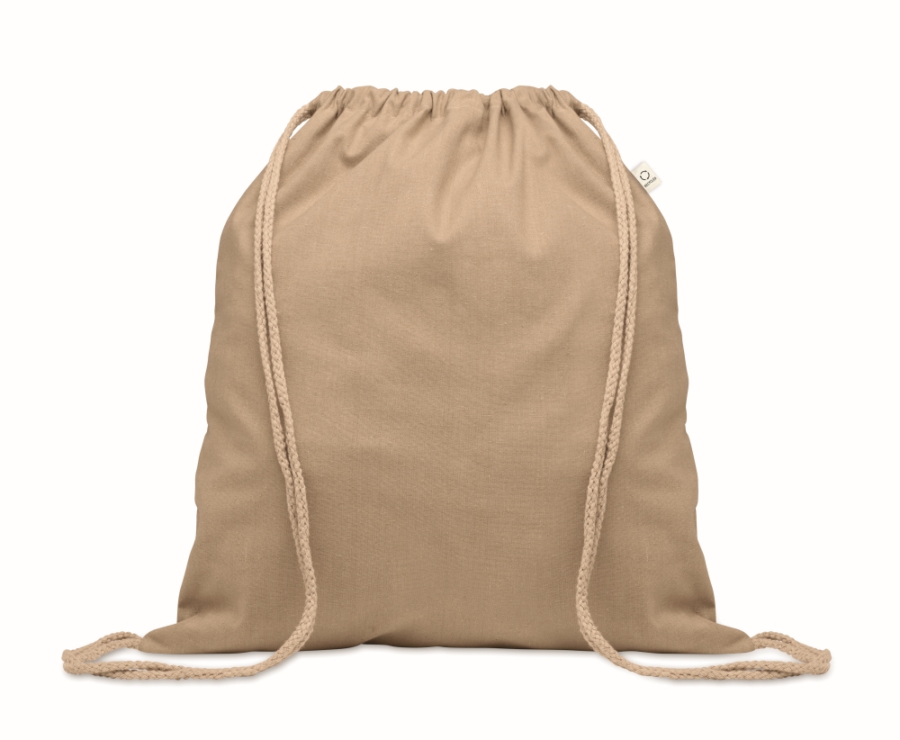 Batoh se stahovací šňůrkou z recyklované předspotřební bavlny (70 %) a RPET (30 %). 140 gr/m2. Rozměry: 37 x 41 cm. Materiál: recyklovaná bavlna