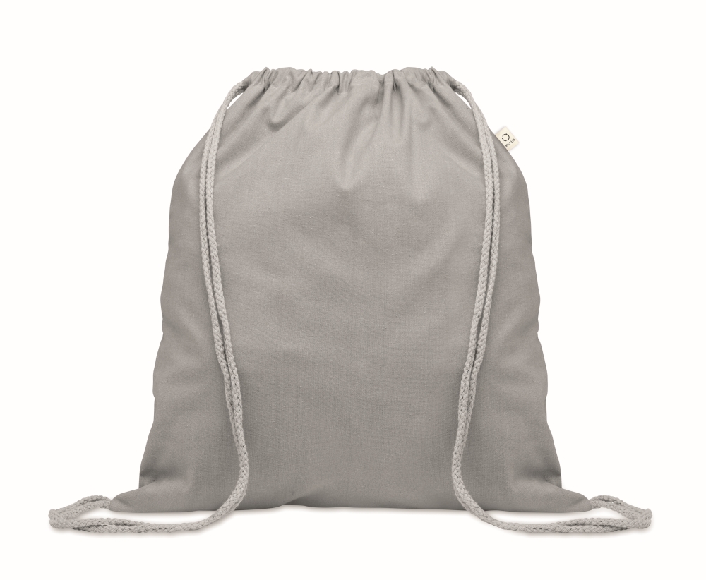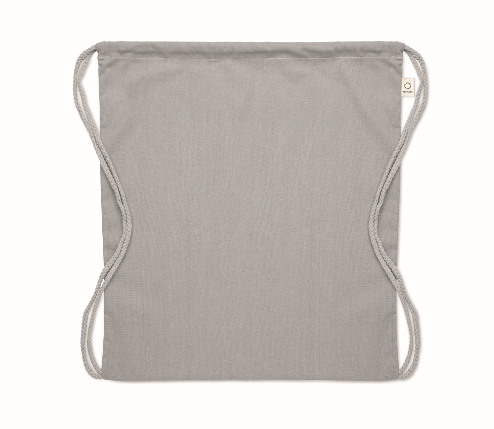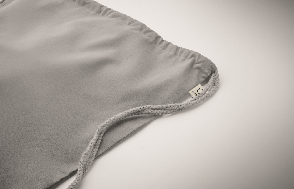 Batoh se stahovací šňůrkou z recyklované předspotřební bavlny (70 %) a RPET (30 %). 140 gr/m2. Rozměry: 37 x 41 cm. Materiál: recyklovaná bavlna
