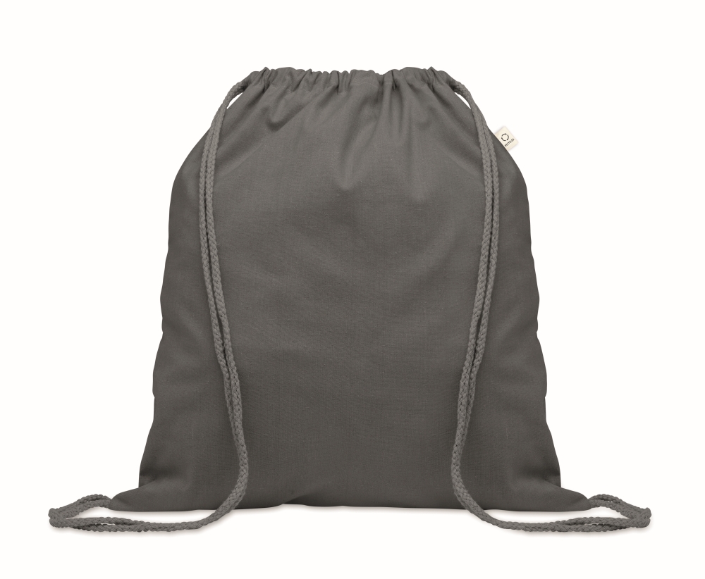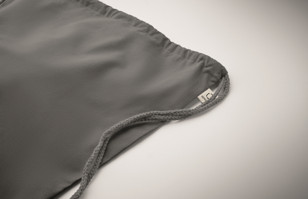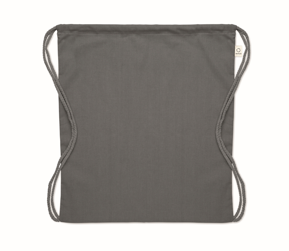 Batoh se stahovací šňůrkou z recyklované předspotřební bavlny (70 %) a RPET (30 %). 140 gr/m2. Rozměry: 37 x 41 cm. Materiál: recyklovaná bavlna