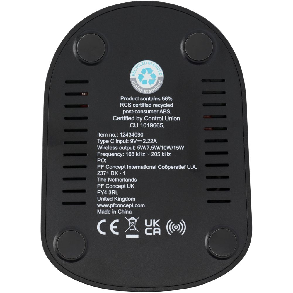 15W bezdrátový nabíjecí stojan s duální cívkou vyrobený z recyklovaného plastu RCS je přínosem pro každý stůl nebo noční stolek. Stojan je vybaven gumovou protiskluzovou základnou, která zabraňuje sklouznutí zařízení. Díky dvěma cívkám lze bezdrátově kompatibilní zařízení rychle napájet v orientaci na výšku i na šířku. Kompatibilní se všemi zařízeními podporujícími Qi (iPhone 8 nebo vyšší a zařízení Android, která podporují bezdrátové nabíjení). Obsahuje vestavěnou technologii FOD (Foreign Object Detection) pro identifikaci nežádoucích objektů a zajištění hladkého procesu nabíjení. Dodáváno s návodem k použití a 100 cm nabíjecím kabelem USB-A na Typ-C a zabaleno v krabičce ze 100% recyklovaného kraftového papíru. Některé kryty/pouzdra na telefon mohou mít vliv na schopnost bezdrátového nabíjení. Rozměry: 7 x 10,4 x 9,6 cm.