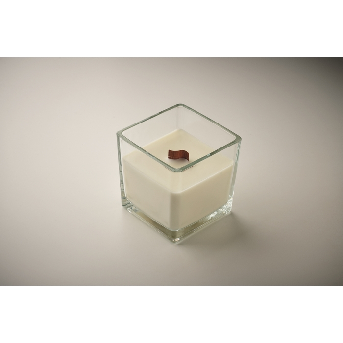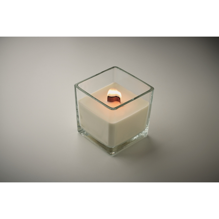 Velká 600g svíčka z rostlinného vosku s vůní vanilky ve skle s dřevěným knotem a designem včelího úlu na horní straně. Doba hoření 65 hodinRozměry: 12 x 12 x 12cm