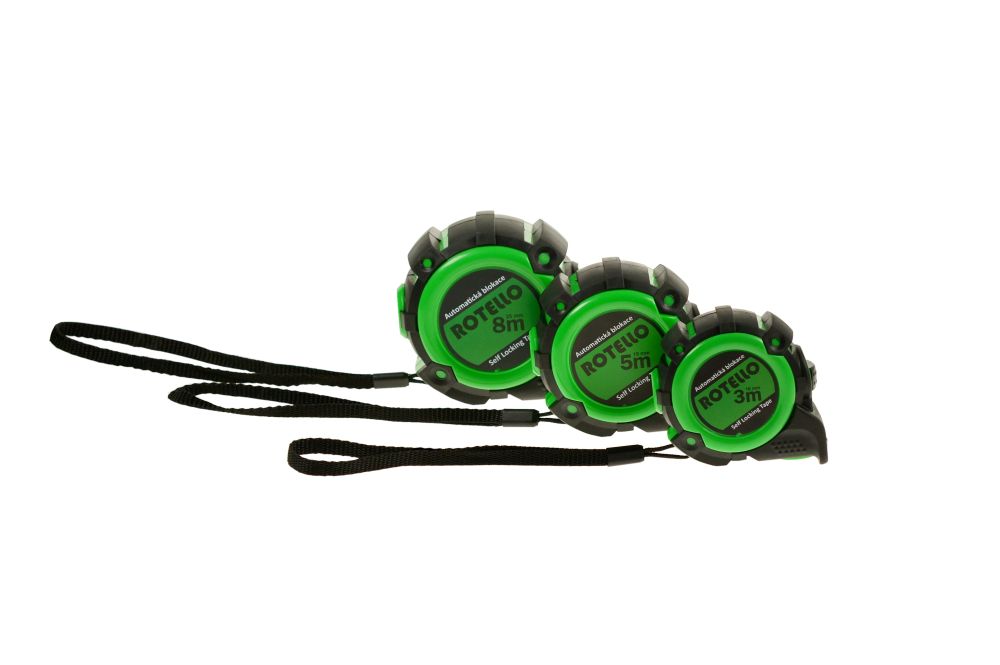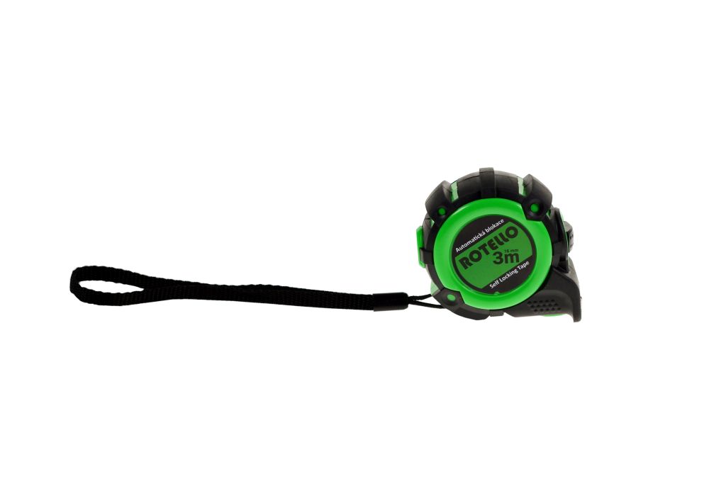 Svinovací metr v ergonomickém tvaru s automatickou blokací při vysouvání a klipem na opasek. Metr má certifikaci přesnosti EG II. Rozměry: 8 × 7 cm.