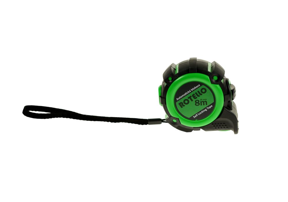 Svinovací metr v ergonomickém tvaru s automatickou blokací při vysouvání a klipem na opasek. Metr má certifikaci přesnosti EG II. Rozměry: 10 × 8 cm.