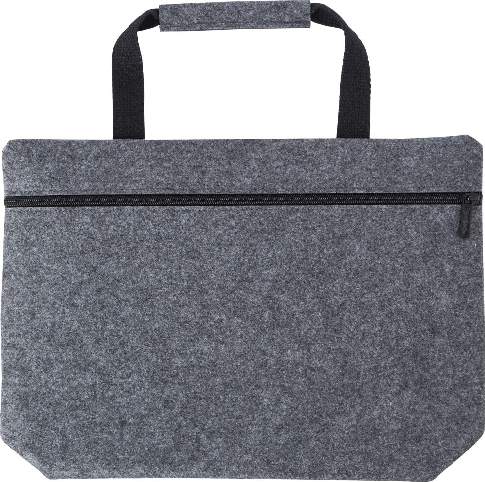 Taška na dokumenty s přihrádkou na notebook 15". Taška se zapíná na zip, má krátké ucho a je vyrobena z RPET plsti. Rozměry: 38 x 6.5 x 28 cm