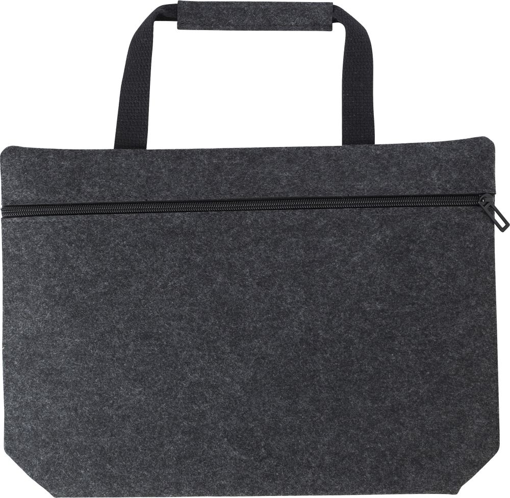 Taška na dokumenty s přihrádkou na notebook 15". Taška se zapíná na zip, má krátké ucho a je vyrobena z RPET plsti. Rozměry: 38 x 6.5 x 28 cm