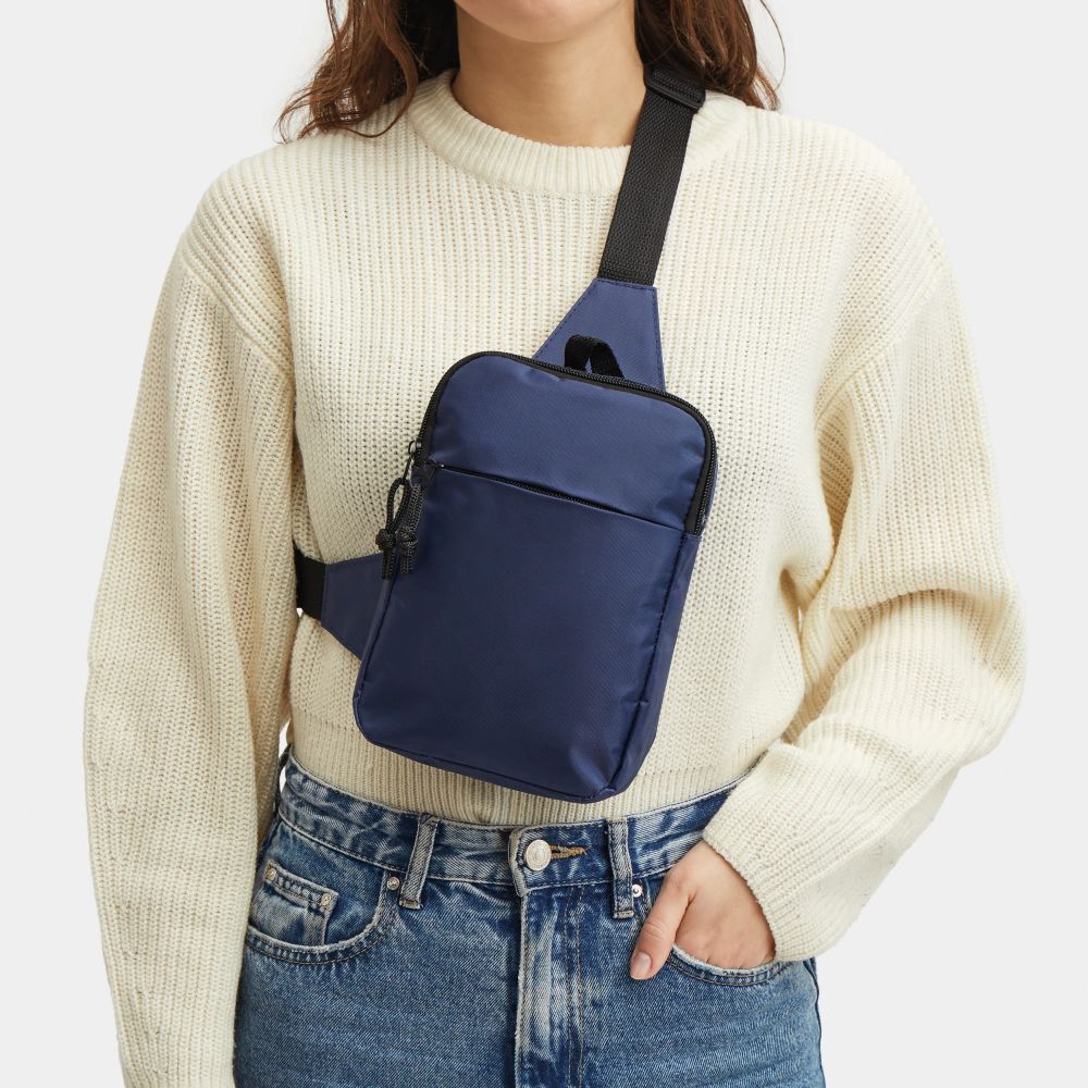 Crossbody taška přes rameno nebo hruď s hlavní kapsou na zip a jednou vnitřní kapsičkou. Dále obsahuje jednu přední kapsou na zip, poutko na zavěšení a nastavitelný ramenní popruh s postranní přezkou. Rozměry: 15 × 5 × 21 cm.