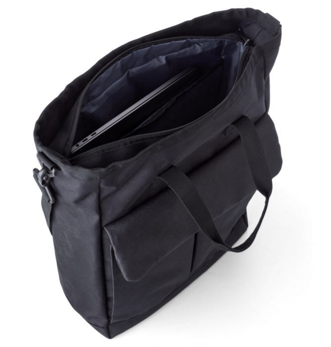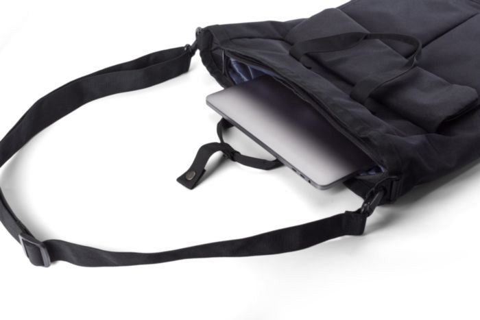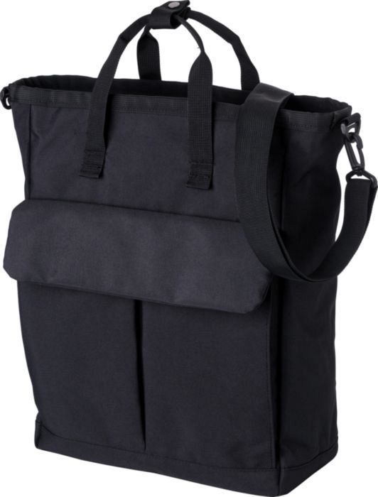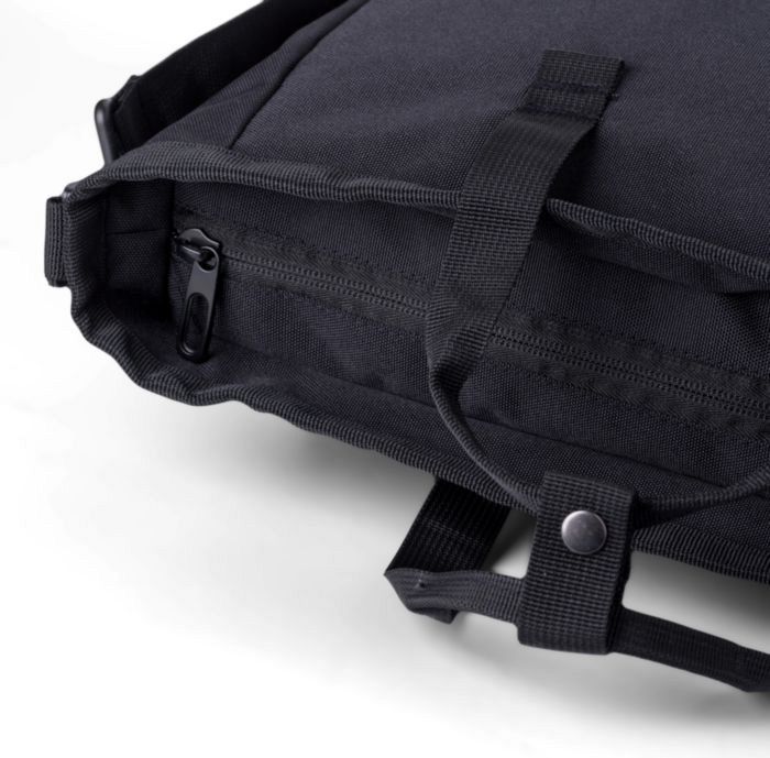 Polyesterová (900D) taška přes rameno. Dvě uzavřené kapsy na přední straně, velká kapsa a kapsa na zadní straně na zip. Uvnitř je několik přihrádek, včetně přihrádky na notebook 15". Taška má nastavitelný popruh a krátké rukojeti pro přenášení. Rozměry: 31 x 13 x 44 cm.