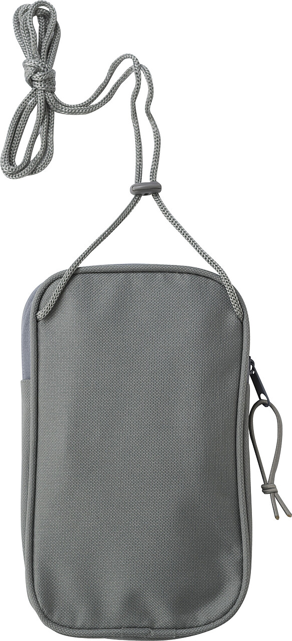 Taška přes rameno z 600D recyklovaného polyesteru s nastavitelnou šňůrkou. Jedna velká přihrádka na zip s gumičkou a vkládací kapsou. Zip má gumičkové táhlo. Rozměry: 30 × 12 × 2,5 cm.