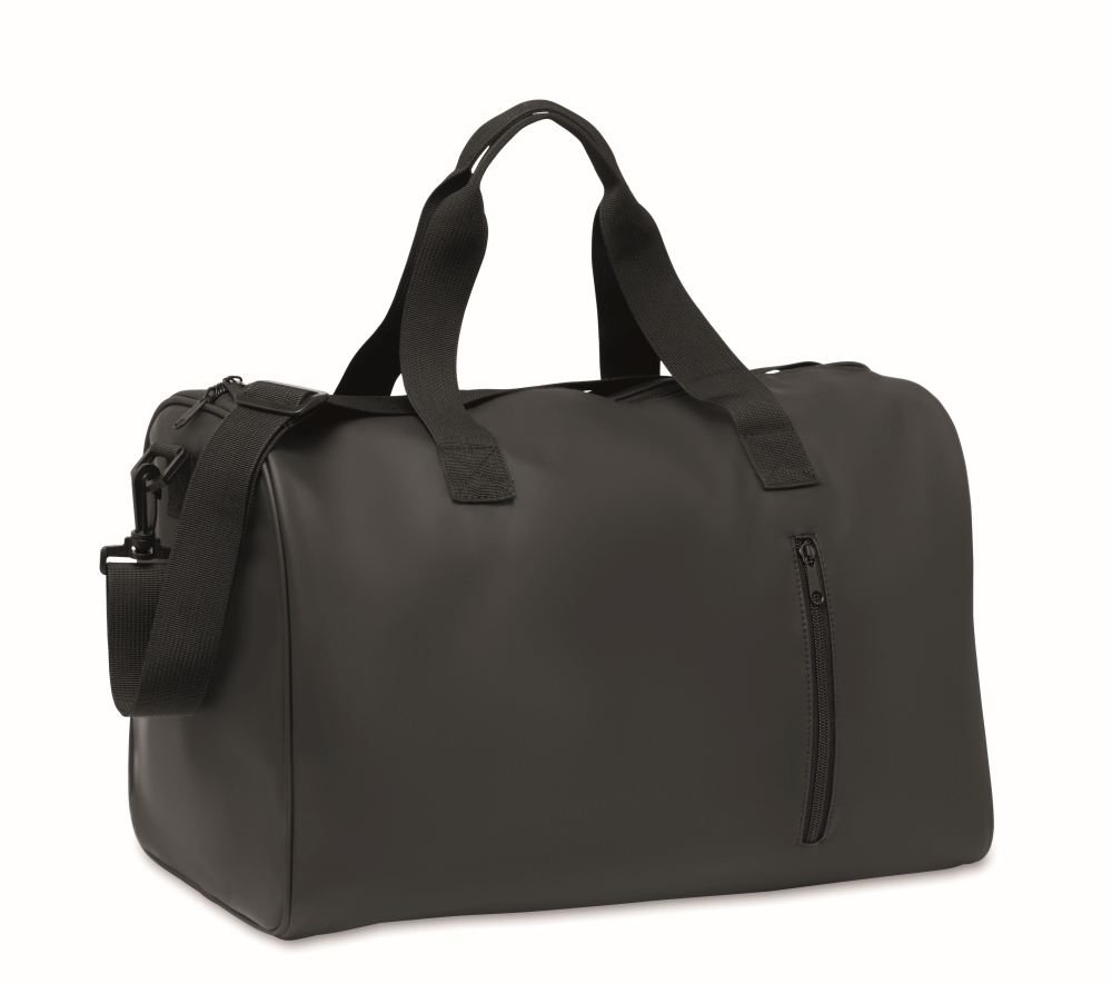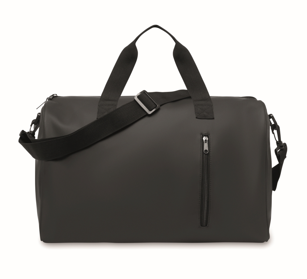 Sportovní taška z měkkého PU s pěnovou výztuhou dna. Jedna hlavní přihrádka a přední kapsa na zip. Podšívka z polyesteru 210D RPET. 2 rukojeti a jeden nastavitelný a odnímatelný ramenní popruh. Rozměry: 44 x 27 x 28 cm