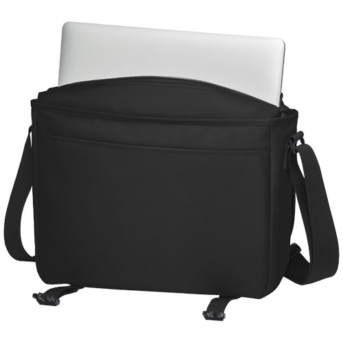 Udržitelná RPET taška na notebook s certifikací GRS vyrobená z 60 % z recyklovaných materiálů. Batoh obsahuje velkou hlavní přihrádku se zipem s polstrovaným pouzdrem na 15" notebook a přední přihrádku (obě se zavíráním na suchý zip). Dodává se s krycí klapkou s kapsou na zip a s uzávěrem na přezky. Nabízí pohodlný polstrovaný a nastavitelný ramenní popruh a průchozí tunel na zadní straně. Rozměry: 38,5 x 29,5 x 12 cm