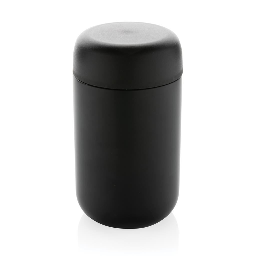 Dvoustěnný termohrnek vyrobený z recyklované nerezové oceli s dobře těsnícím nepropustným víčkem. Jeho tvar je velice příjemný jak pro držení, tak pro plnění. Materiál má certifikace RCS, která zajišťuje kompletně certifikovaný dodavatelský řetězec recyklovaných materiálů. Celkový obsah recyklovaného materiálu je 81 %. Neobsahuje BPA. Objem 360 ml. Registrovaný design. Baleno v papírové krabičce s certifikací FSC. Rozměry: 13,7 x 7,7 cm.