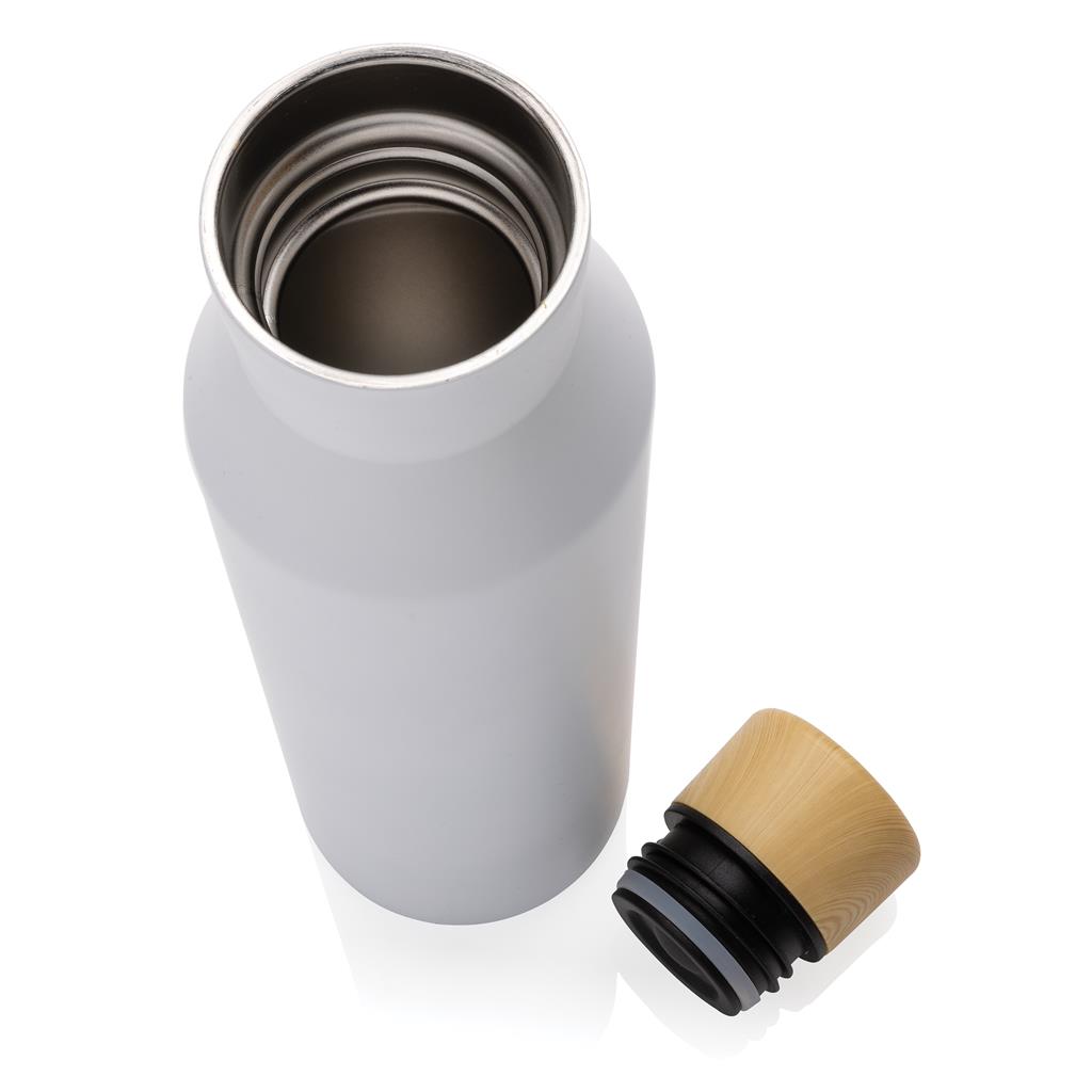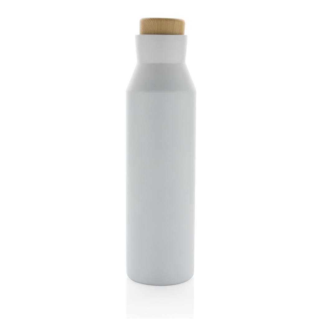 Dvoustěnná termoláhev vyrobená z recyklované nerezové oceli, nepropustná, s víčkem v bambusovém designu. Udrží nápoj chladný až 15 hodin a teplý až 5 hodin. Materiál má certifikace RCS, která zajišťuje kompletně certifikovaný dodavatelský řetězec recyklovaných materiálů. Celkový obsah recyklovaného materiálu je 88 %. Neobsahuje BPA. Objem 540 ml. Baleno v papírové krabičce s certifikací FSC. Registrovaný design. Rozměry: 25,8 x 6,9 cm.