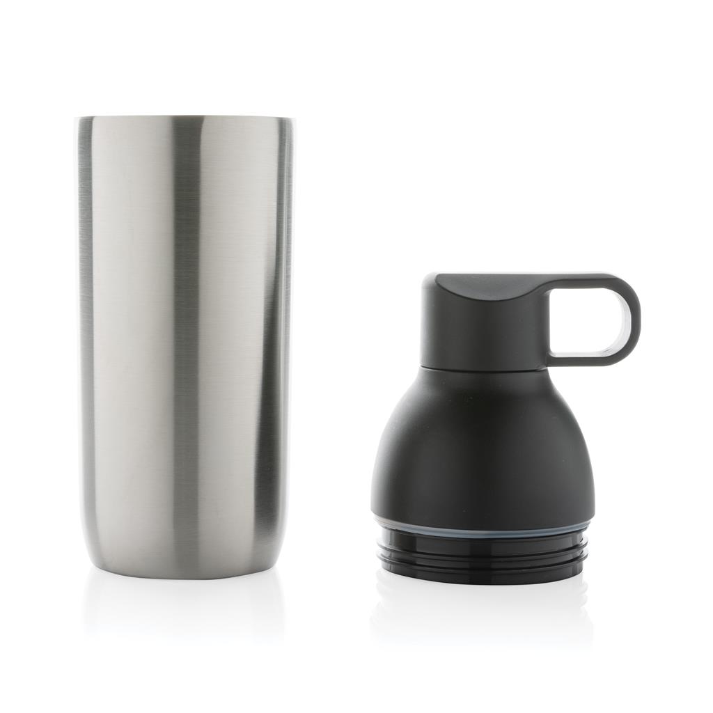 Dvoustěnná láhev z recyklované oceli udrží nápoj chladný až 15 hodin a teplý až 5 hodin. Speciální provedení uzávěru usnadňuje nalévání a také čištění. Materiál má certifikace RCS, která zajišťuje kompletně certifikovaný dodavatelský řetězec recyklovaných materiálů. Celkový obsah recyklovaného materiálu je 75 %. Neobsahuje BPA. Objem 540 ml. Baleno v papírové krabičce s certifikací FSC. Registrovaný design. Rozměry: 22,5 x 7,4 cm.