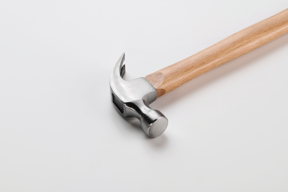 Tesařské kladivo s hlavou z ocele a násadou z bukového dřeva. Rozměry: 29 x 10,3 x 2,4 cm