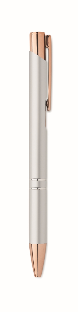 Tlačítková propiska z recyklovaného hliníku. Modrý inkoust. Rozměry: O 1 x 13,5 cm. Materiál: recyklovaný hliník