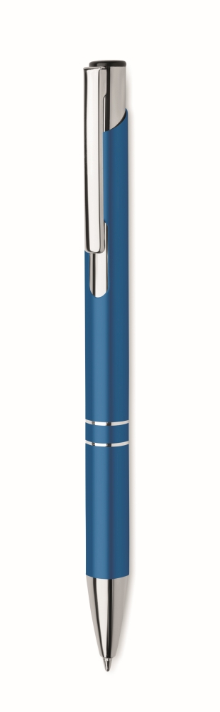 Tlačítkové kuličkové pero z recyklovaného hliníku. Modrý inkoust. Rozměry: O 1 x 13,7 cm. Materiál: recyklovaný hliník