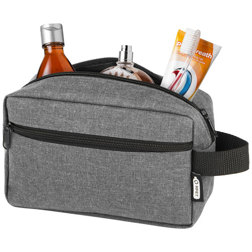 Toaletní taška je dokonalým společníkem na cesty pro kosmetiku a hygienické potřeby. Je vyrobena z recyklovaného polyesteru s certifikací GRS, tím pádem je udržitelnější. Obsahuje hlavní přihrádku na zip, přední kapsu a poutko na popruh. Kapacita: 1,5 litrů.
