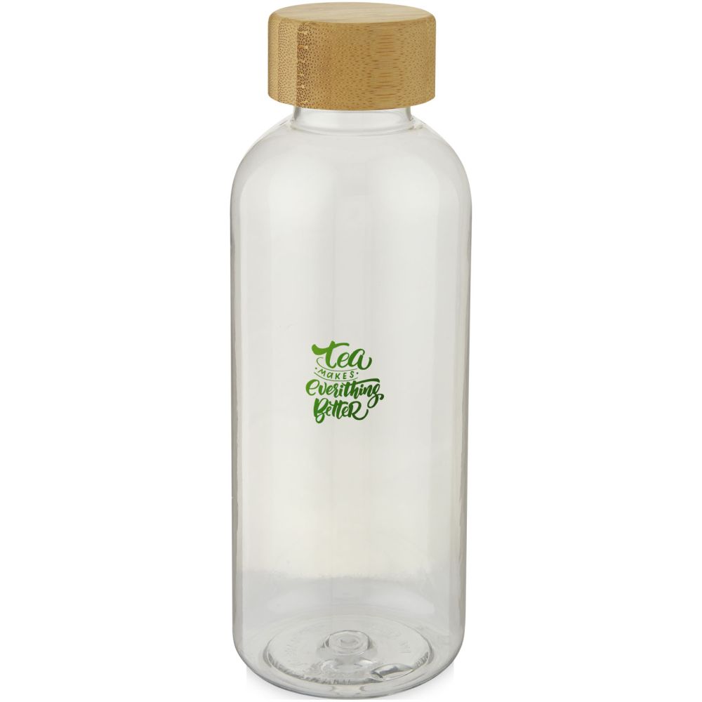 Opakovaně použitelná láhev na vodu vyrobená z recyklovaného plastu se stylovým bambusovým víčkem. Jednostěnná láhev je bez BPA, testovaná a schválená podle německé legislativy o bezpečnosti potravin (LFGB). Testováno a schváleno na obsah ftalátů podle předpisů REACH. Bambus pochází z udržitelných, ekologicky a sociálně odpovědných zdrojů. Objem je 950 ml. Nedoporučuje se mýt v myčce. Dodává se v dárkové krabičce z recyklované lepenky. Rozměry: 7,55 x 27,7 x 7,55 x O 7,55 cm.