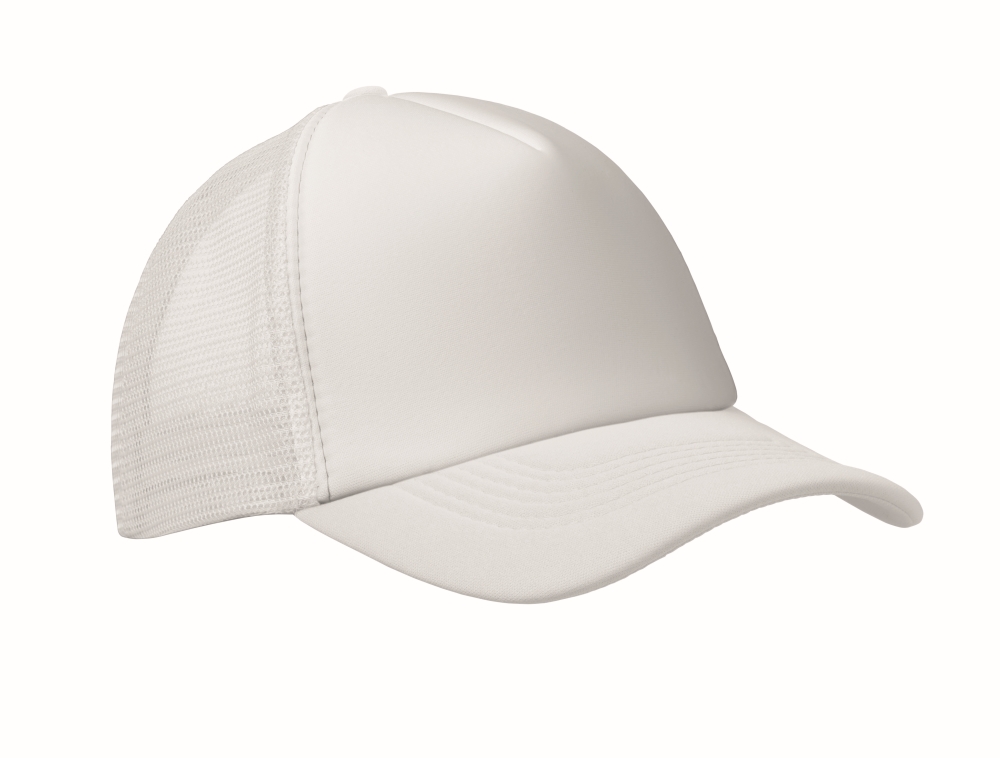 Trucker´s čepice z polyesteru 140-150 gr/m2 (pěna, snap zapínání, 5 panelů) Speciální pro sublimaci. Rozměry: 22 x 17 x 11 cm