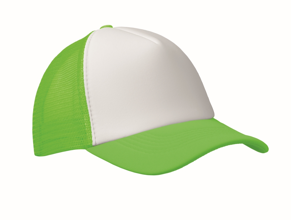 Trucker´s čepice z polyesteru 140-150 gr/m2 (pěna, snap zapínání, 5 panelů) Speciální pro sublimaci. Rozměry: 22 x 17 x 11 cm