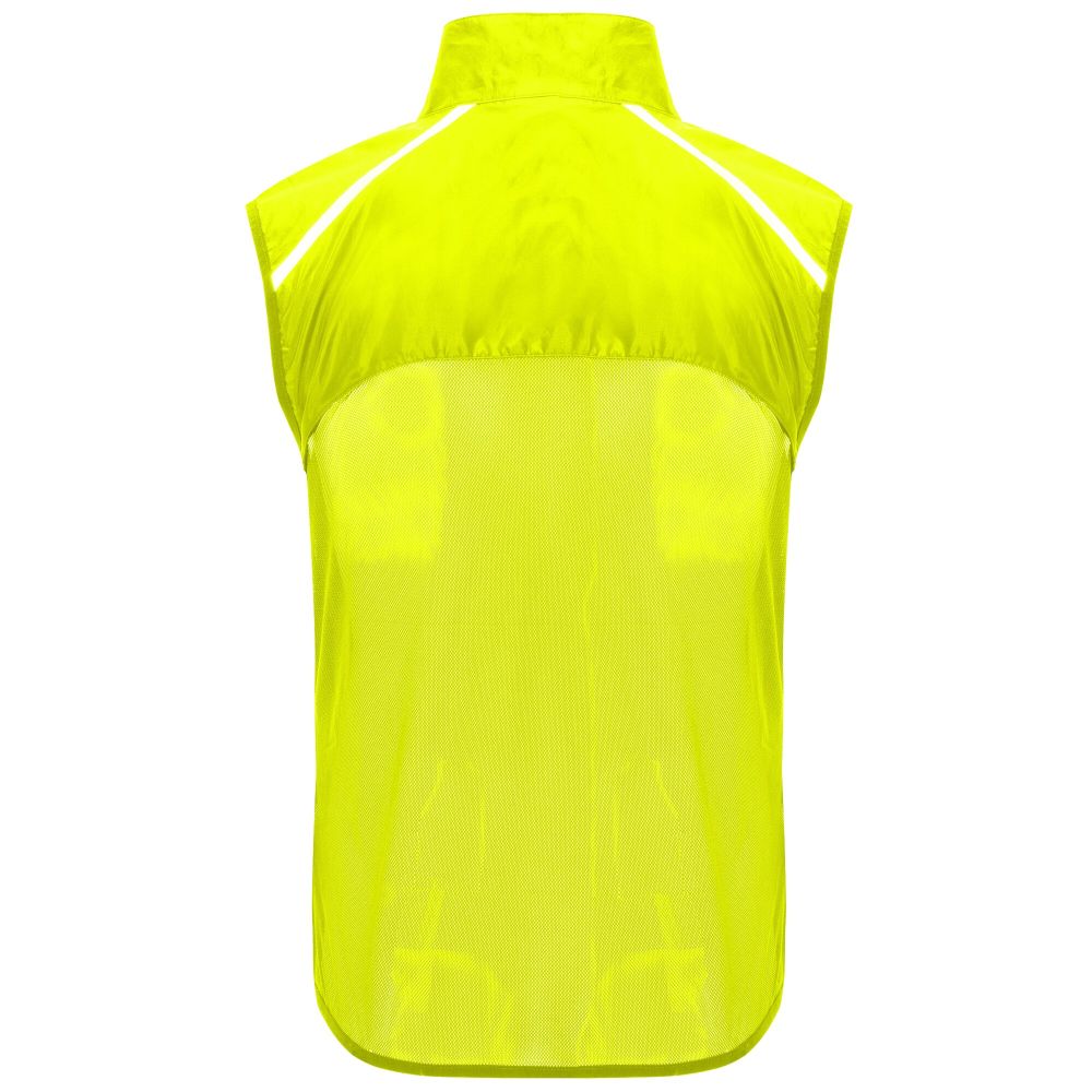 Větruodolná a prodyšná. Přední zip s odpovídajícím chráničem brady. Elastické lemování v průramcích a na spodním okraji. Spodní část zad z mikroperforované látky. Vysoce viditelné detaily na horní, přední a zadní straně. Kapsa s elastickým páskem pro uložení vesty a její nošení na zápěstí. Odnímatelný štítek.