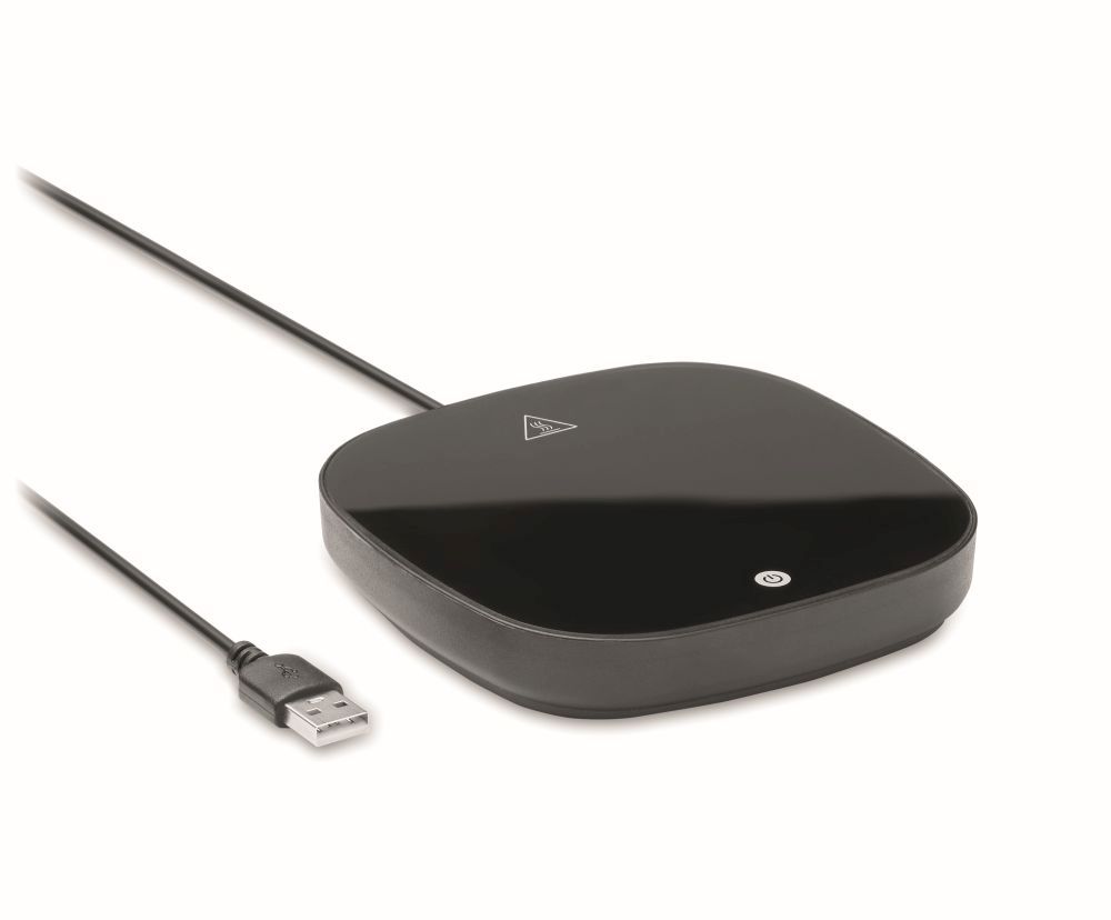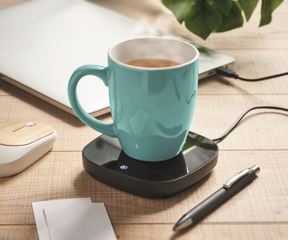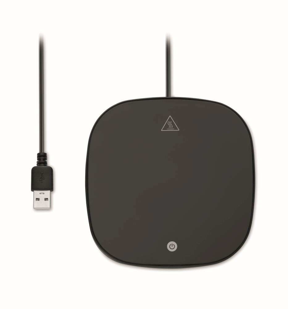 Zařízení na ohřívání hrnků. Vyrobeno z ABS. Udržuje nápoje teplé do max. 45 °C. Připojeno a napájeno přes USB. Rozměry: 15x15x3 cm