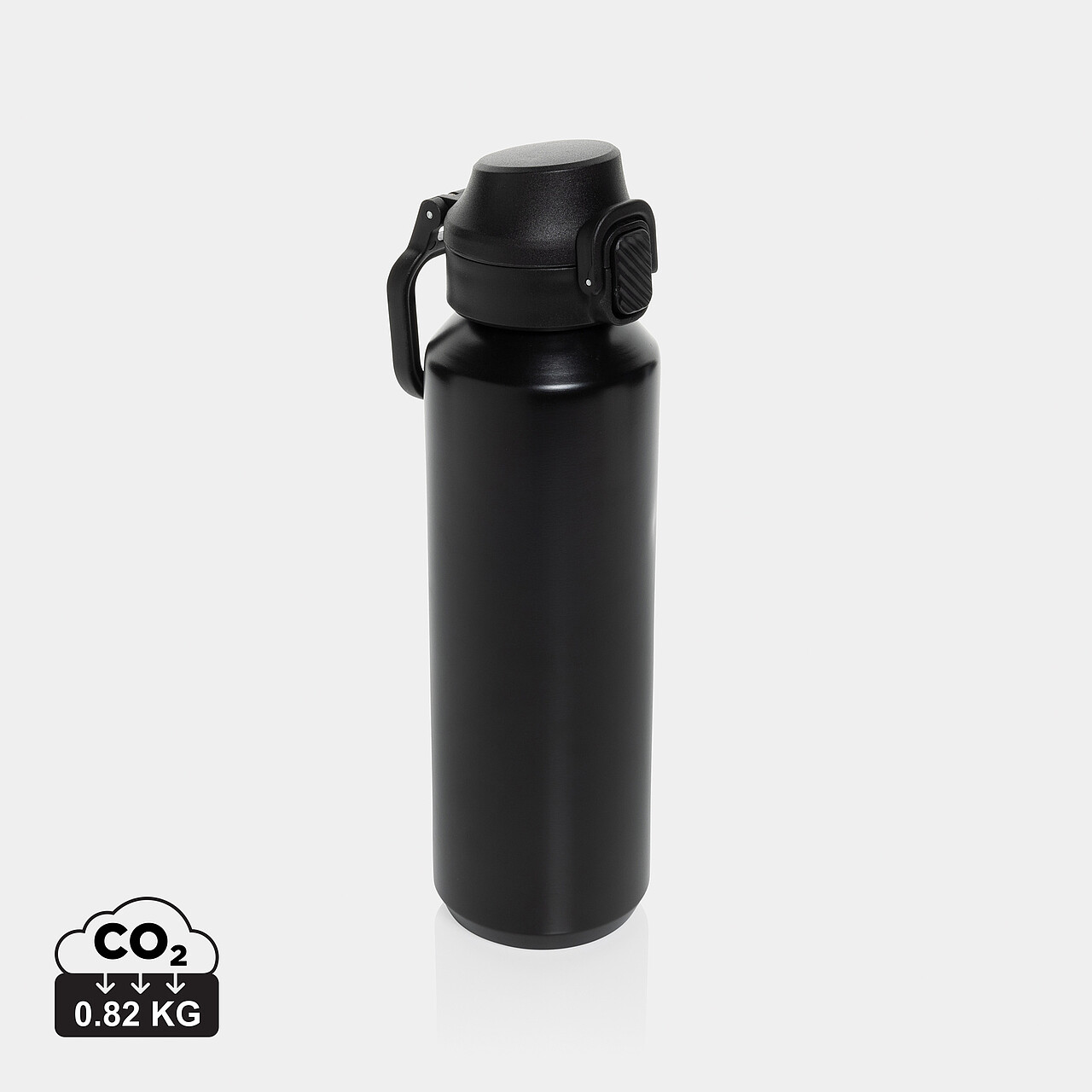 Lahev je vyrobena z certifikované recyklované oceli 304. Tato lahev na vodu má jednostěnnou konstrukci s jedinečným šroubovacím a uzamykatelným víčkem odolným proti úniku tekutin. Ovládání jednou rukou. Stisknutím otevřete víčko pro snadné pití. Lze používat pouze na studené nápoje. Pouze ruční mytí. Vyrobeno z recyklovaných materiálů s certifikací RCS (Recycled Claim Standard). Certifikace RCS zajišťuje kompletně certifikovaný dodavatelský řetězec recyklovaných materiálů. Celkový obsah recyklovaného materiálu: 73 % z celkové hmotnosti výrobku. Neobsahuje BPA. Hromadně baleno. Objem 600 ml.