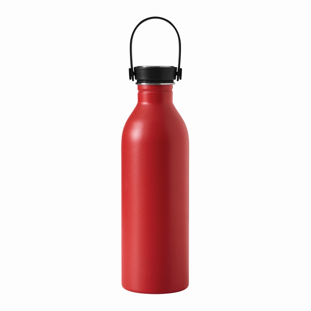 Vakuová láhev matný práškový lak, plastové víčko s horním povrchem z nerezové oceli, bezpečný šroubovací uzávěr a silikonové poutko na přenášení, kapacita cca. 550 ml. Rozměry: O6,6 x 21 cm