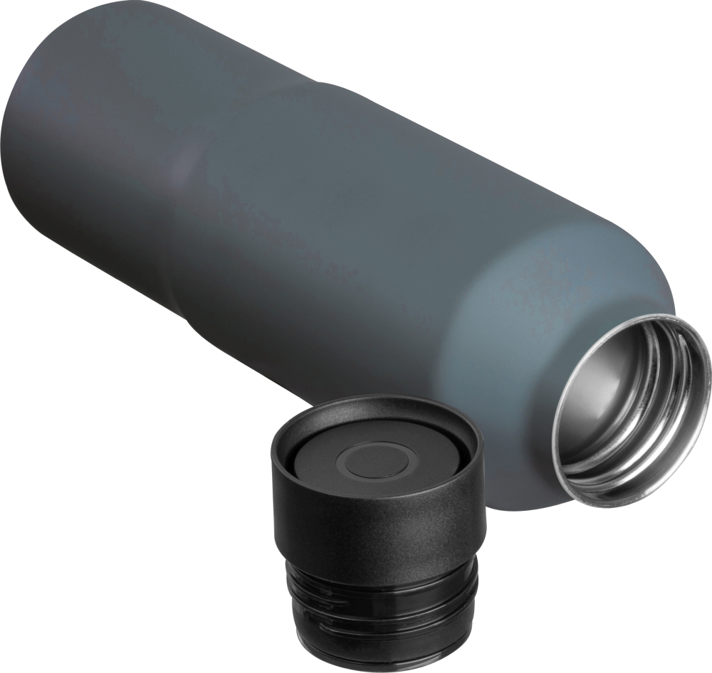 Velká dvoustěnná vakuová láhev na pití vyrobená z recyklované nerezové oceli, s nepropustným uzávěrem a objemem 600 ml. Dodáváno v černé krabičce. Rozměry: o 7 x 24,7 cm