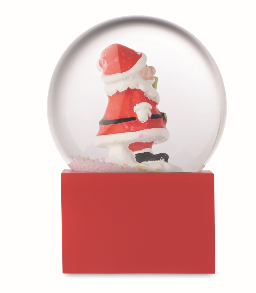 Malá vánoční skleněná ozdoba ve tvaru sněhové koule s polyresinovým podstavcem. Rozměry: 4,5 x 4,5 x 6 cm. Materiál: sklo
