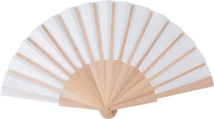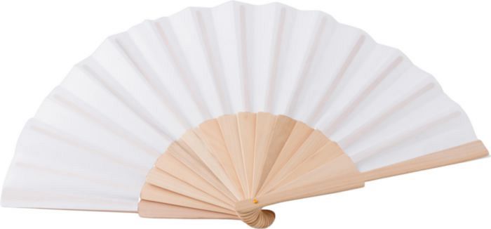 Vějíř z RPET s dřevěnou rukojetí. Jednotlivě baleno v hnědé kartonové krabici. Rozměry: 40 x 23cm.