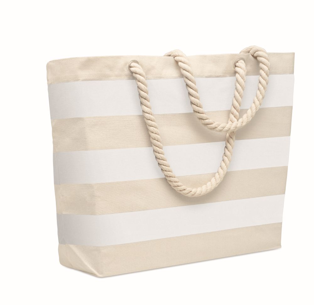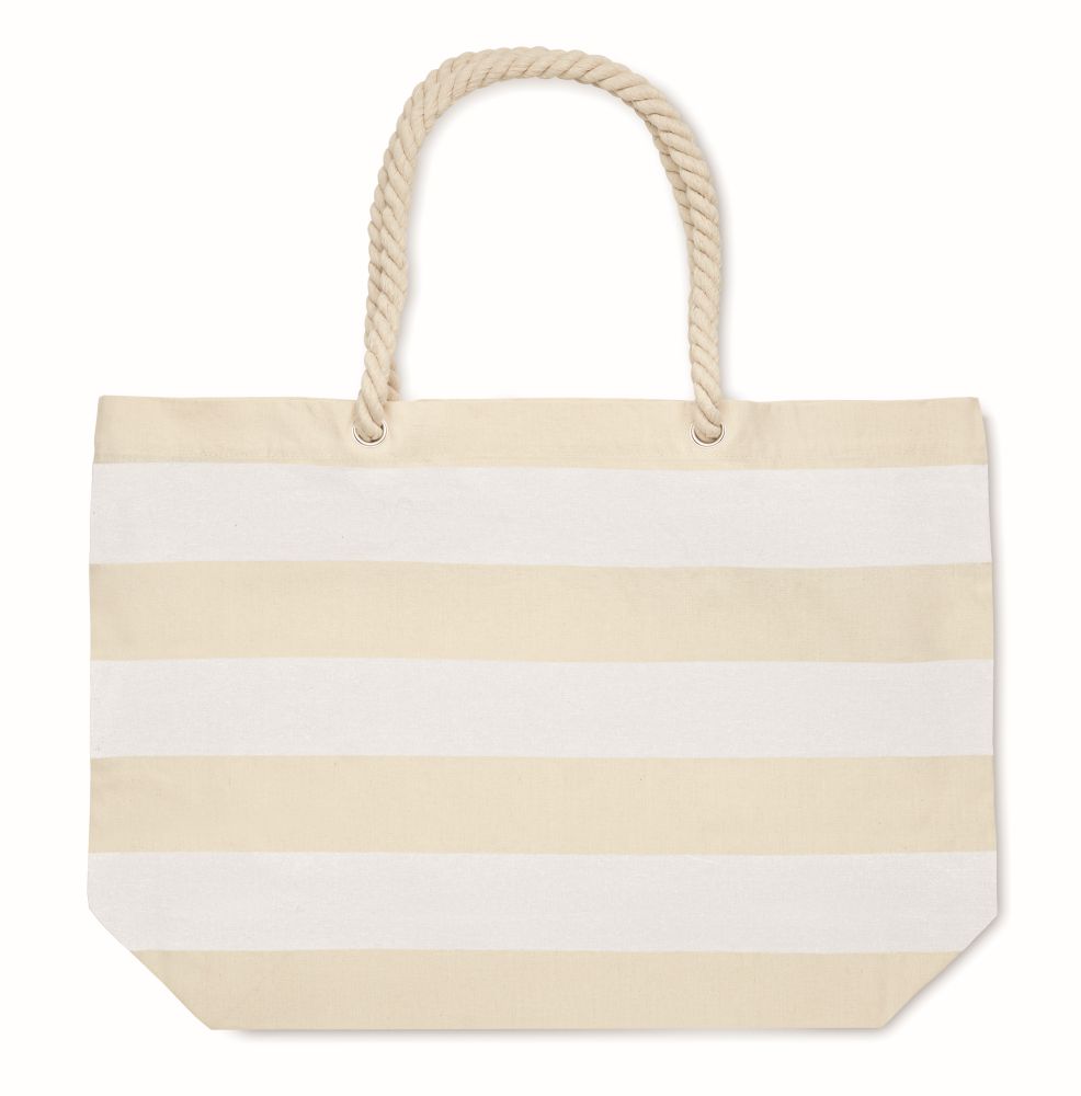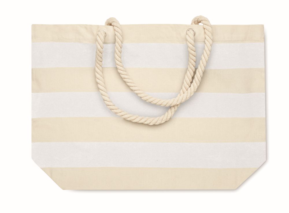 Pruhovaná plážová nebo nákupní taška z bavlny s rukojetí ze šňůry. 220 g/m2. Rozměry: 55x15x39cm