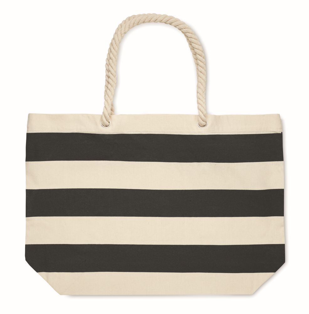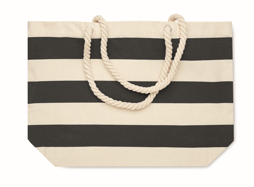 Velká nákupní či plážová taška, bavlna, pruhovaná, černá